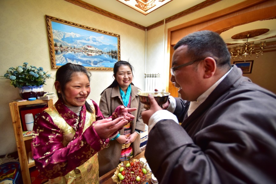 The Tibetan New Year falls on Feb 24. Due to the novel coronavirus outbreak, residents in Southwest China's Tibet autonomous region were called on by authorities not to participate in any celebratory group activities and to avoid visiting friends or relatives. Instead, people choose to stay at home with family for a safe and healthy new year.