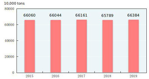 In 2019, the sown area of grain was 116.06 million hectares, a drop of 0.97 million hectares compared with 2018. Of this total, the sown area of wheat was 23.73 million hectares, a decrease of 0.54 million hectares; the sown area of rice was 29.69 million hectares, a decrease of 0.50 million hectares; the sown area of corn was 41.28 million hectares, a decrease of 0.85 million hectares. The sown area of cotton was 3.34 million hectares, a decrease of 20 thousand hectares. The sown area of oil-bearing crops was 12.93 million hectares, up by 60 thousand hectares; the sown area of sugar crops was 1.62 million hectares, down by 10 thousand hectares.