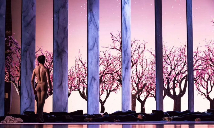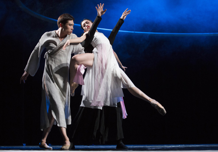 In addition to the standard ballet movements, modern dance elements have been incorporated. The multi-level dance vocabulary charges the solitary characters with emotional momentum, and metaphoric stage props, such as a shadow projected on a wall and a flowering tree beside a bed, provide an understated expression of the characters’ moods.