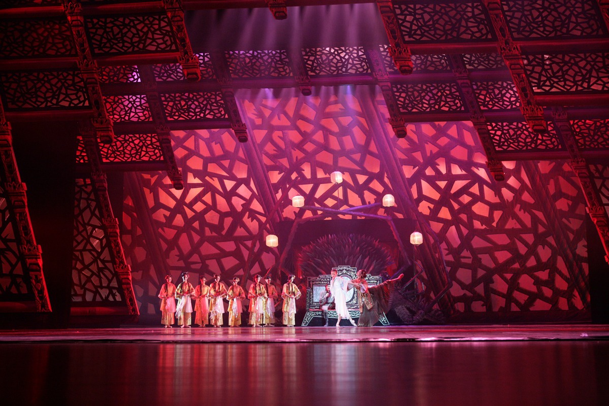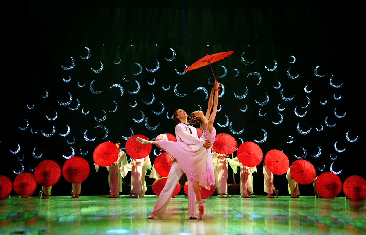 Consisting of five acts, the ballet boasts an outstanding combination of oriental and Western arts. Firstly, the choreographic style is a key part of its success. For example, instead of kneeling down on one knee, the “fish crouching” (woyu) posture, a standard movement of Chinese classical dance, is employed in Yue Er’s solo.