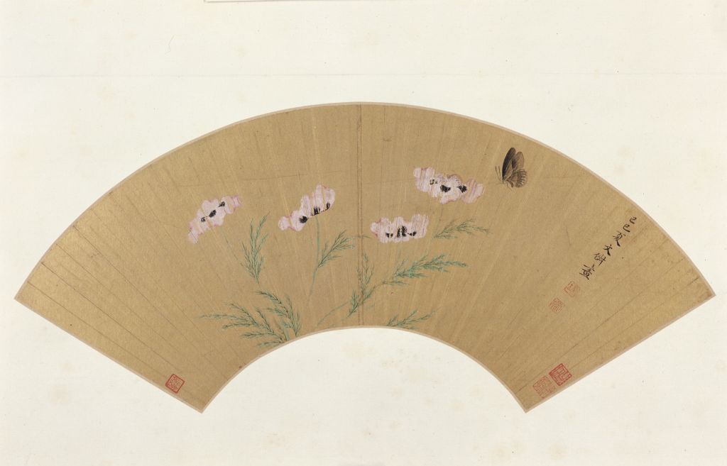 Fan face, ink and color on golden paper, 16.5×52.6 cm