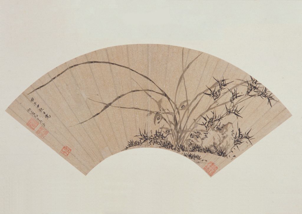 Fan face, ink on golden paper, 17.8×49.8 cm