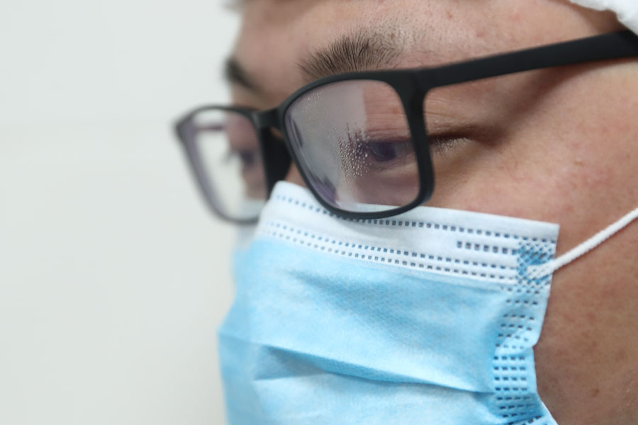 Cai Zehao's glasses have vapor on them as he boils some herbs. [Photo by Wang Jing/chinadaily.com.cn]