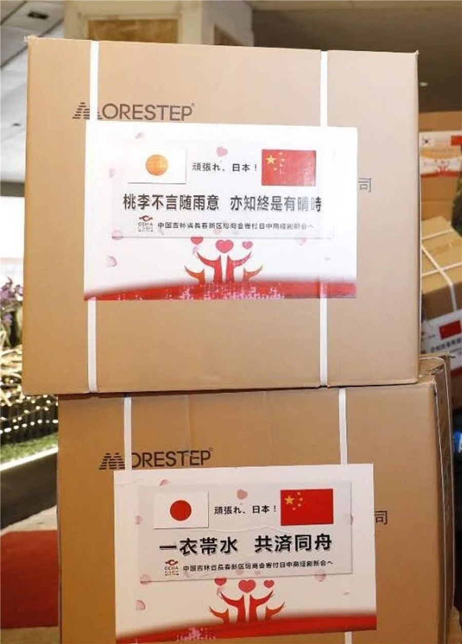 The medical materials donated by the Federation of Industry and Commerce of Changchun New Area in Jilin province on March 6, 2020, to its partners in Japan and South Korea. [Photo provided to chinadaily.com.cn]