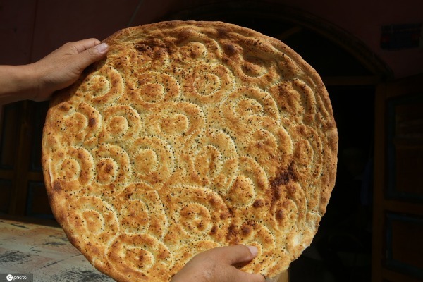 There are many nang cake stores within a few meters of each other on Resitan Street. Nang is a staple food and also a snack presented to entertain guests in the Xinjiang Uygur autonomous region. [Photo/IC]