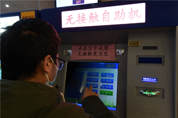 A man operates a no-contact self-service machine at a hospital in Hefei, East China's Anhui province, on March 9, 2020. [Photo/Xinhua]