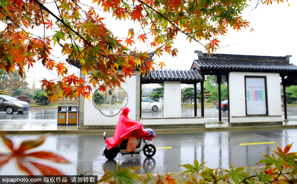 A person rides an electric bike during a rainy day in Suzhou, East China's Jiangsu province, Nov 27, 2019. [Photo/Sipa]