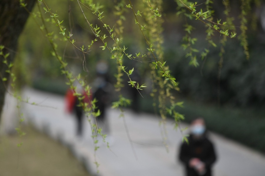 People visit the West Lake scenic area in Hangzhou, Zhejiang province, March 12, 2020. Upon the arrival of spring, willow trees start sprouting and flowers are gradually in full bloom, welcoming one of the best seasons of the year for an outing. [Photo/Xinhua]