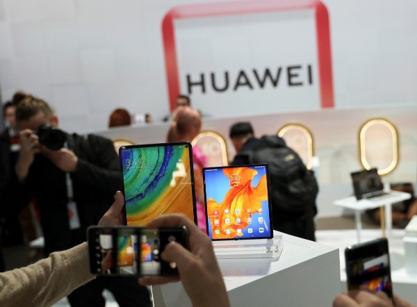 People take pictures of Huawei Mate Xs foldable smartphone and a Huawei MatePad Pro during Huawei product launch event in Barcelona, Spain, Feb 24, 2020. [Photo/Agencies]