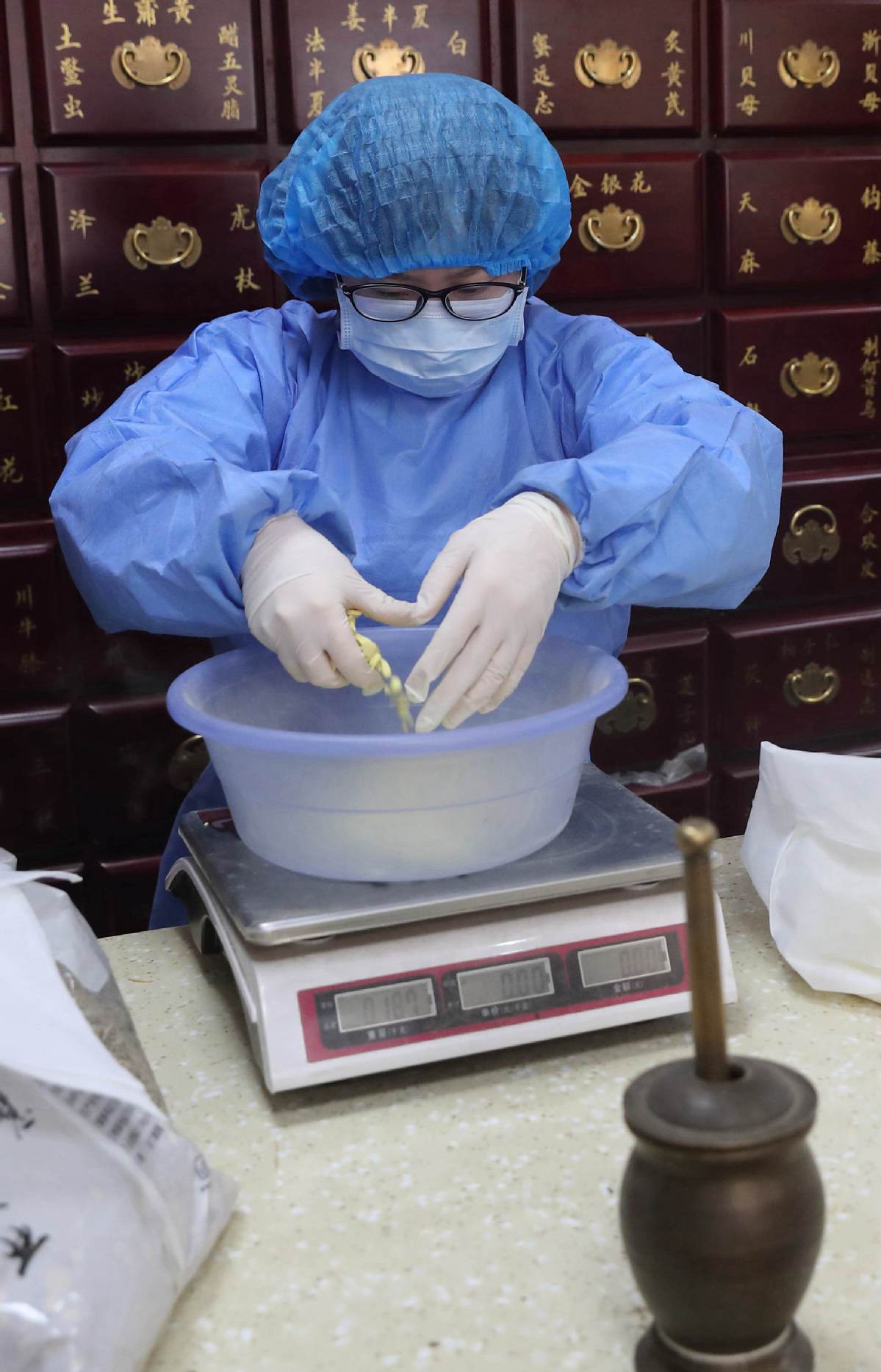 A pharmacist makes up a prescription. [Photo by Wang Jing/China Daily]