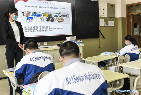 For the graduating senior high school student in northwest China's Xinjiang Uygur autonomous region, Monday's classes are different from those she has taken over the past two weeks: They have finally shifted from online to offline.