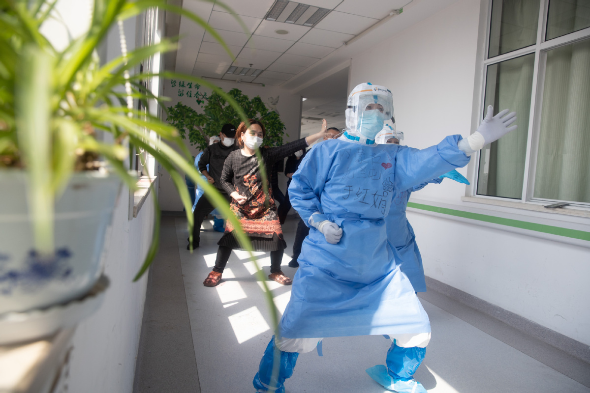 baduanjin, a traditional Chinese fitness activity, to help them recover from COVID-19 infection in Wuhan, Central China's Hubei province, on March 19, 2020. [Photo Ke Hao/chinadaily.com.cn]