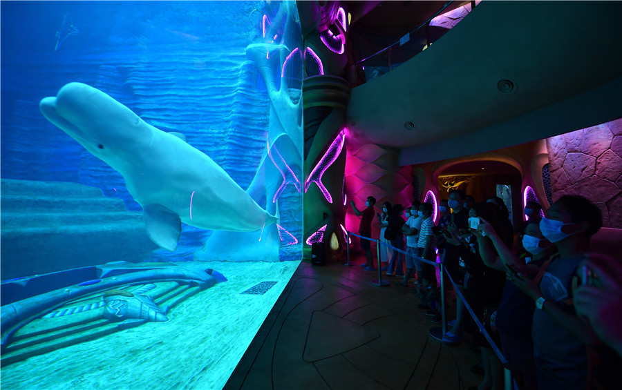 Encompassing a hotel, a water park, an aquarium and water-themed performances, the resort has resumed partial operations since the end of February and plans to open all facilities on March 28.