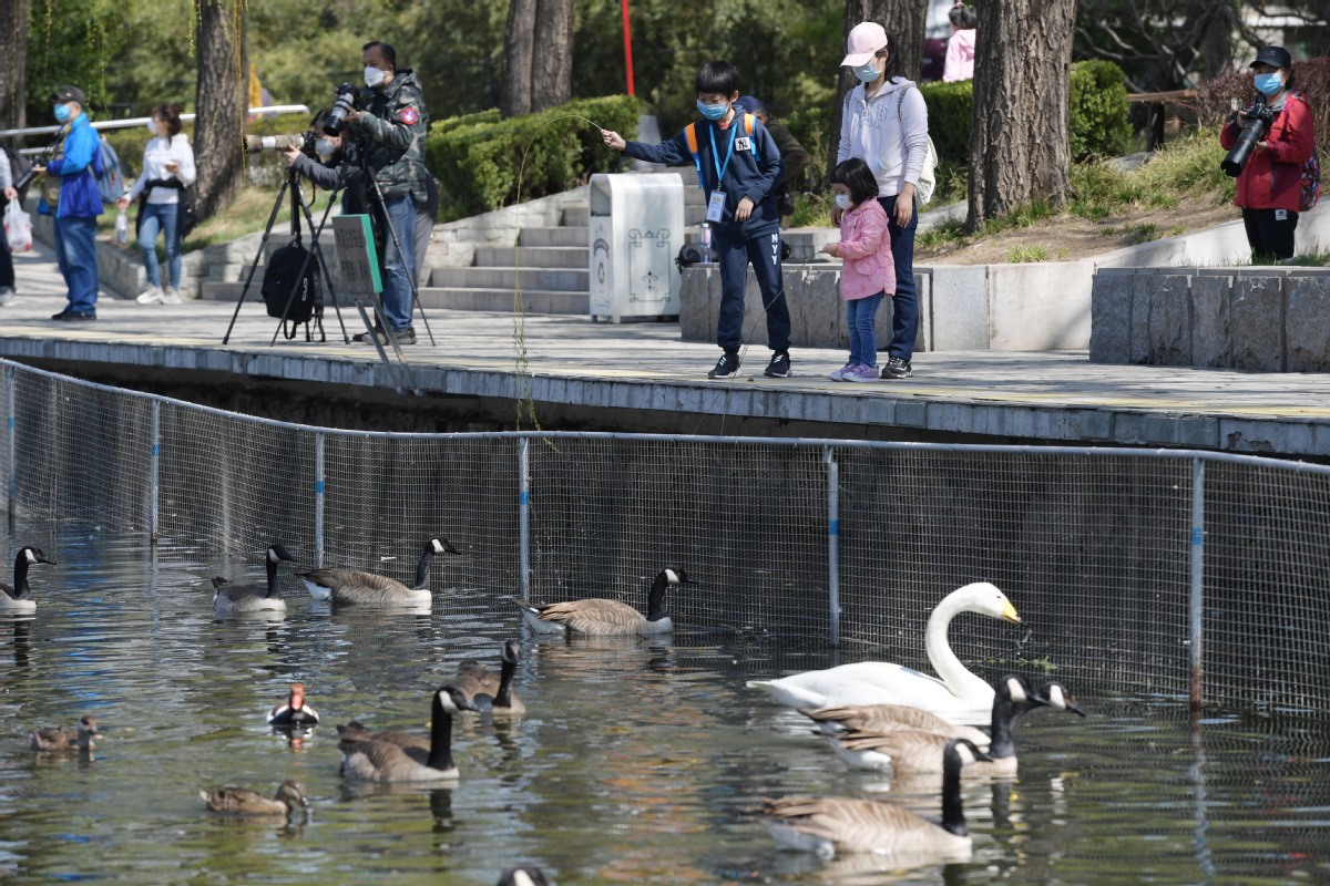 Visitors enjoy the view by a lake at the Beijing Zoo. [Photo by Wei Xiaohao/chinadaily.com.cn]