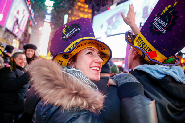 Revelers celebrate the new year in Times Square in New York on Jan 1, 2020. [Photo/Agencies]