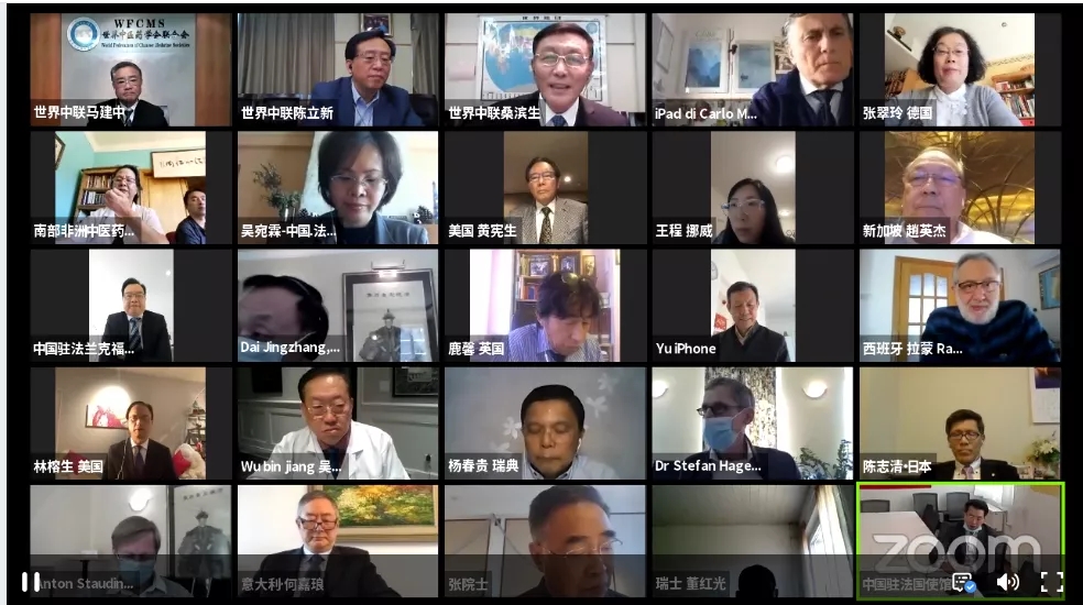 Zhang explained TCM concepts, pathogeny and clinical features of COVID-19, and how to combine traditional Chinese and Western medicine to overcome the virus. He also answered questions asked by members from Australia, France, Hungary, the US and Italy.