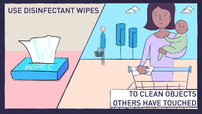 This is especially important on communal items such as shopping carts at supermarkets: make sure you wipe the handle as well as the child's seat (if you have one) before use.