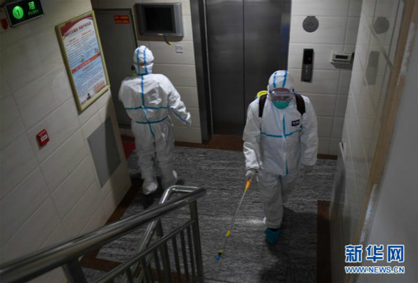 Staff of the Saihan District Center of Disease Control, or CDC, on Feb 11 disinfect a temporary management area in Hohhot, capital of North China’s Inner Mongolia autonomous region. Since the outbreak of the novel coronavirus pneumonia, the staff has been taking great strides in virus prevention and control, conducting epidemiological investigations on residents in the district, tracking the information of confirmed patients and finding close contacts. [Photo/Xinhua]