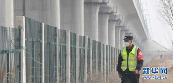 Yang Baoqing on Feb 29 patrols a section of the Zhangjiakou-Hohhot High-speed Railway which is located in Hohhot, in North China's Inner Mongolia autonomous region. The line, being one of the important components of the Beijing-Lanzhou High-speed Railway, has a design speed of 250 kilometers per hour. After its official launch, a great deal of comfort and convenience was on offer to passengers in the Beijing-Tianjin-Hebei area. There are more than 240 kilometers of rail, under the jurisdiction of the Hohhot Railway Public Security Department. [Photo/Xinhua]