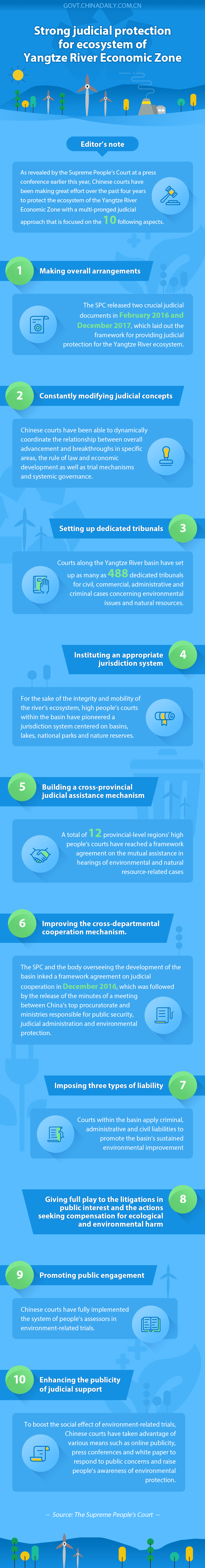 Chinese courts have been making great effort to protect the ecosystem of the Yangtze River Economic Zone over the past four years with a multi-pronged judicial approach.
