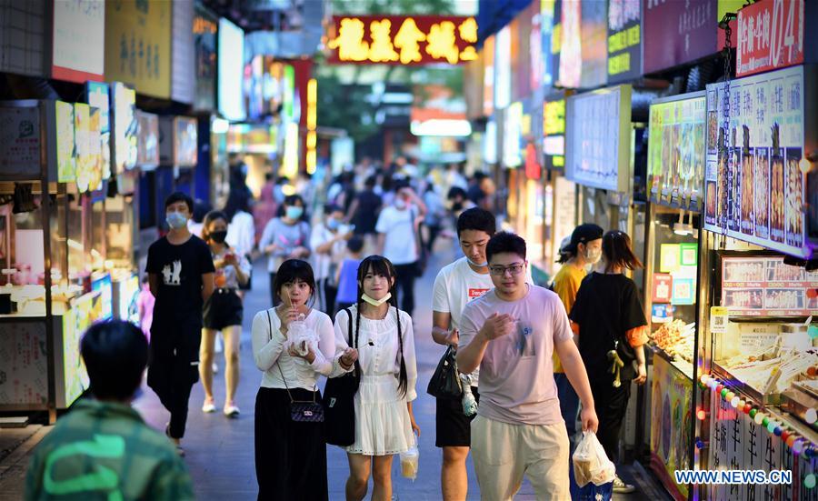 People visit a snack street in Haikou, capital of South China's Hainan province, March 26, 2020. [Photo/Xinhua]