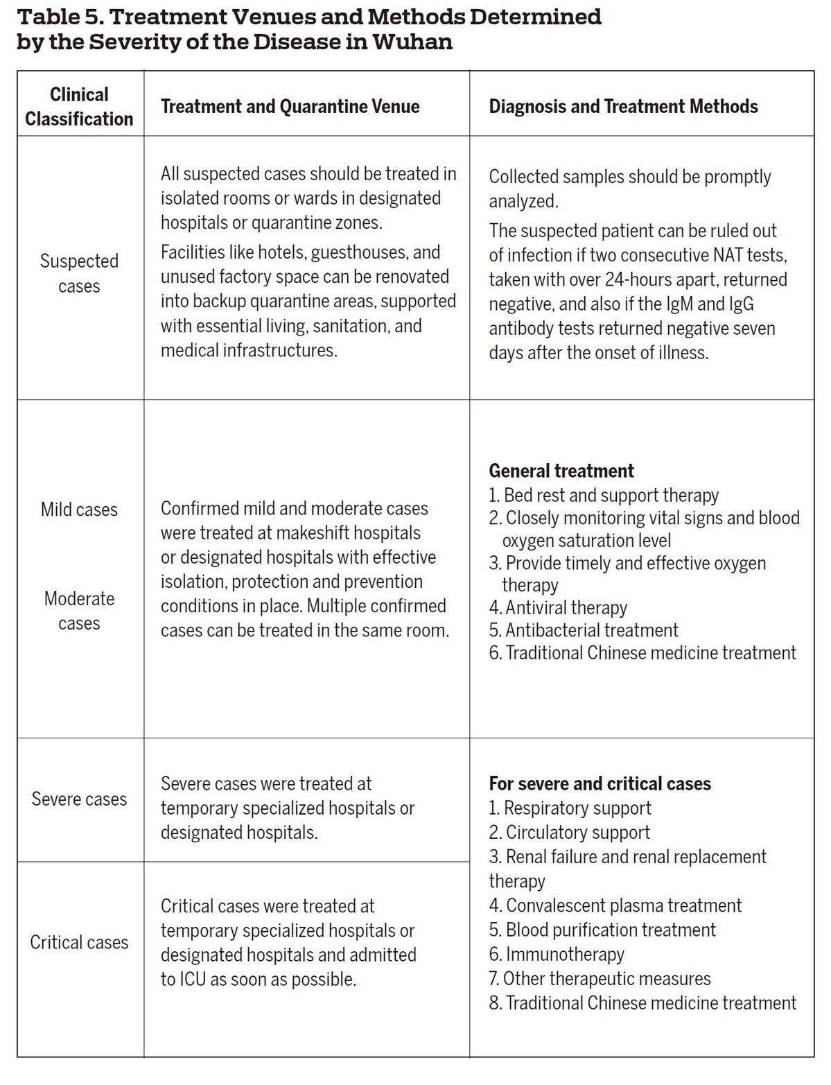 The sudden outbreak of the epidemic put an overwhelming burden on medical resources and led to treatment delays. The unchecked virus triggered a high mortality rate, posing the biggest challenge in the early fight against the epidemic. In line with the instructions of Chinese leaders to prioritize medical treatment, great efforts were made in Wuhan and the rest of the country to ensure all confirmed cases were hospitalized, early diagnosis made and early treatment provided, concentrated hospitalization implemented and a combination of traditional Chinese and Western medicine used. Hospitals were classified by grades and patients were admitted according to different conditions and symptoms. Treatment was provided free to relieve financial burden, lest the infected who could not afford treatment led to the spread of the virus.