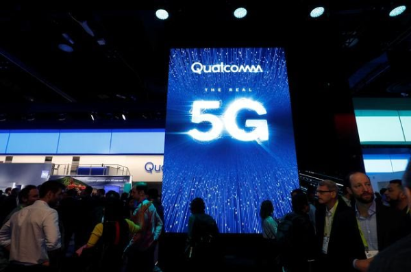 People walk by a video display promoting 5G connectivity at the Qualcomm booth during the 2019 CES in Las Vegas, United States on Jan 8, 2019. [Photo/Agencies]