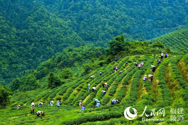 Rows of bright green tea leaves create a serene scene in a tea garden in Anxi county, Fujian province. [Photo/people.com.cn]