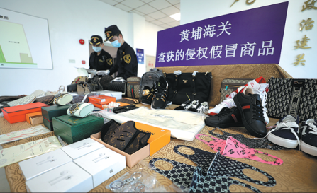 Dongguan Customs officials in Guangdong province seize shipments of counterfeit goods, involving multiple brands. ZHANG HAILONG/FOR CHINA DAILY
