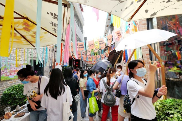 People go shopping at a creative market in Guangzhou, Guangdong province on May 4, 2020, during the five-day Labor Day holiday. [Photo/Sipa]