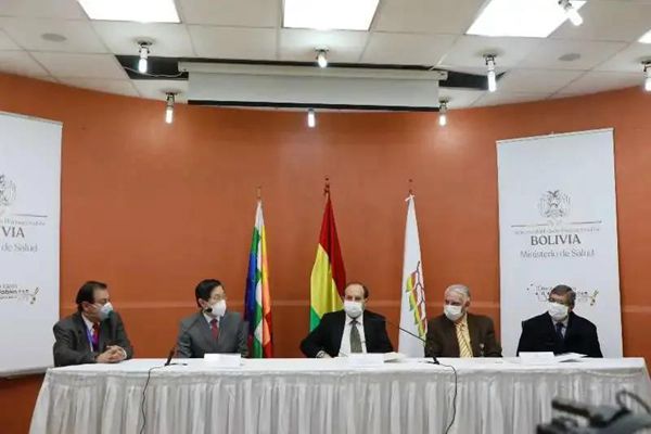 Huang Yazhong, Chinese ambassador to Bolivia, Marcelo Navajas, Bolivian minister of health, and Fernando Calderón and Gonzalo Chacón, representatives of the foreign ministry of Bolivia, were present.