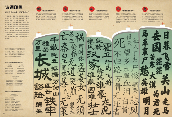 According to Song, the team discussed dozens of topics pertaining to the Great Wall and decided to use each double-page spread to present one topic with graphics, which was their first challenge.