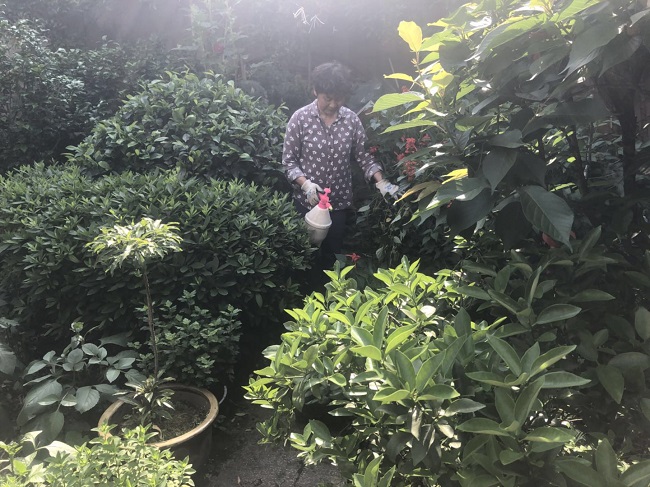 Wang Aizhen is a 65-year-old Yangzhuang villager whose courtyard filled with flowers and green plants has won the admiration of local villagers.