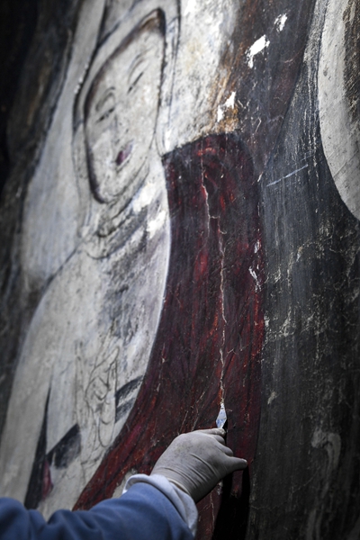 "I got goosebumps when the whole pattern of the painting showed up clearly after we had spent some 20 days cleaning it," says 60-year-old Wang Minquan, an expert in the group who has been participating in the year-long repair program-the largest of its kind since the Qing Dynasty (1644-1911)-since April.