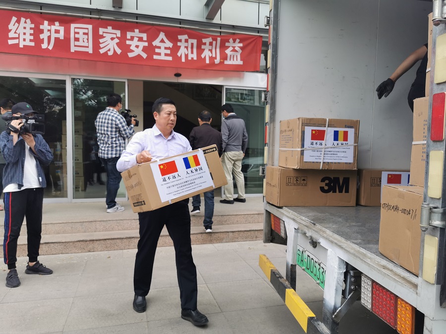 A batch of protective medical materials from Ningxia Hui autonomous region has been transported to three countries on Friday to help curtail the COVID-19 pandemic in Russia, Japan and Romania. [Photo by Hu Dongmei/chinadaily.com.cn]