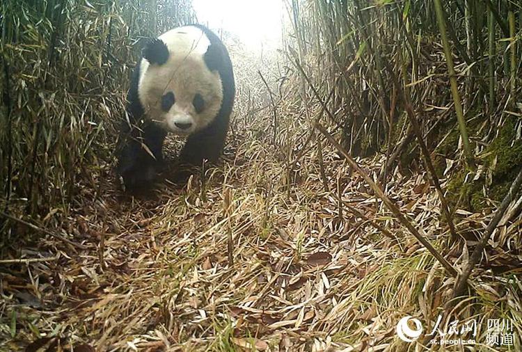 Staff with the Jiudingshan nature reserve found the photos and video clips of the panda as they took back 40 infrared cameras installed for wildlife monitoring, according to the natural resources department of Mianzhu.