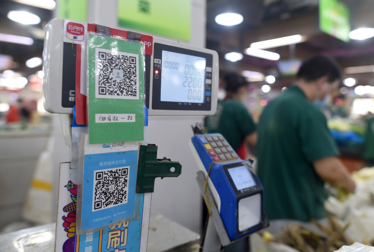 Quick response codes for payment at Luojiazhuang Farmer's Market in Hangzhou, the first 5G farmer's market in East China's Zhejiang province. [Photo/Xinhua]