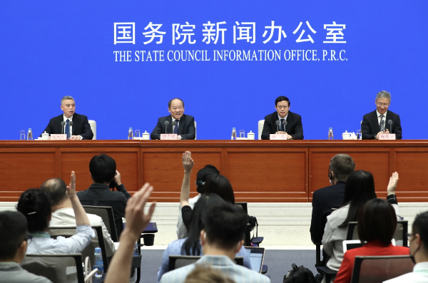Ning Jizhe (second from left), deputy head of the National Development and Reform Commission, at a news conference in Beijing on Sunday. [Photo by Zou Hong/chinadaily.com.cn]