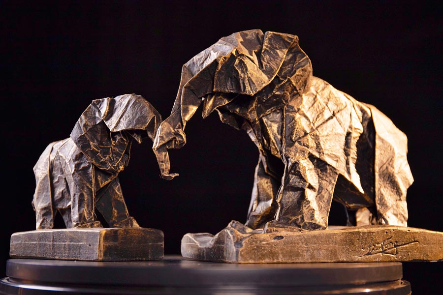 Displayed on the variety show, Qiaoshou Shentan: an origami work featuring elephants by Liu Tong. [Photo provided to China Daily]