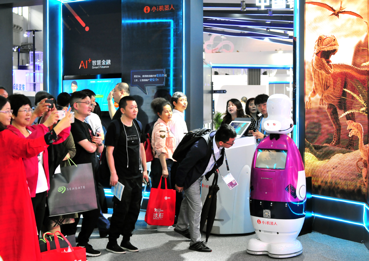China Telecom's 5G technology and intelligent robot applications were on display at last year's expo. [Photo by Chen Haining Provided to chinadaily.com.cn]