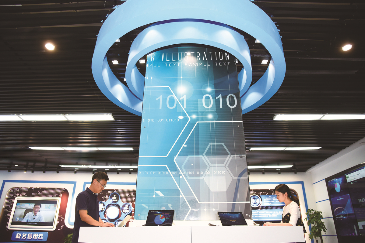 Gui'an Digital Economic Industrial Park workers debug the tax credit cloud. [Photo by the news center of Gui'an New district.]