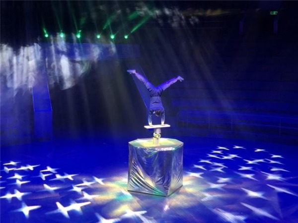 The show included the troupe's signature performances such as feats of strength and bowl tricks, but none saw more than two artists take the stage at the same time.