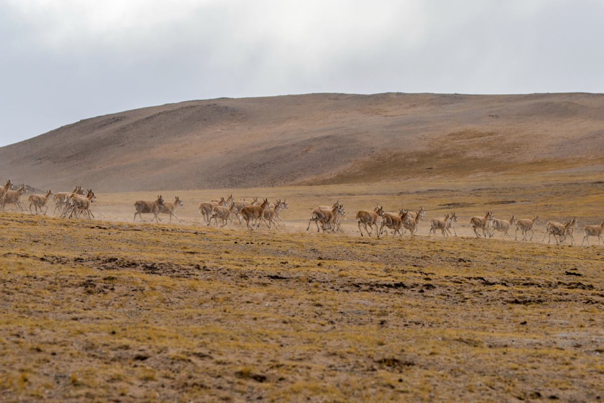 Tibetan antelopes begin their annual migration in Gerze county, Tibet autonomous region, on Thursday. [Photo by Cao Zhiqing/For chinadaily.com.cn]