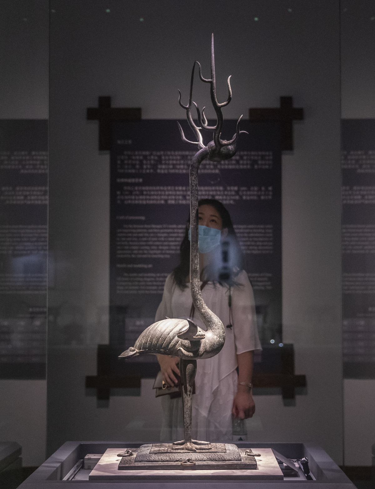 A visitor looks at an ancient relic on display at the Hubei Provincial Museum in Wuhan, Central China's Hubei province, June 14, 2020. [Photo by Ke Hao/For chinadaily.com.cn]