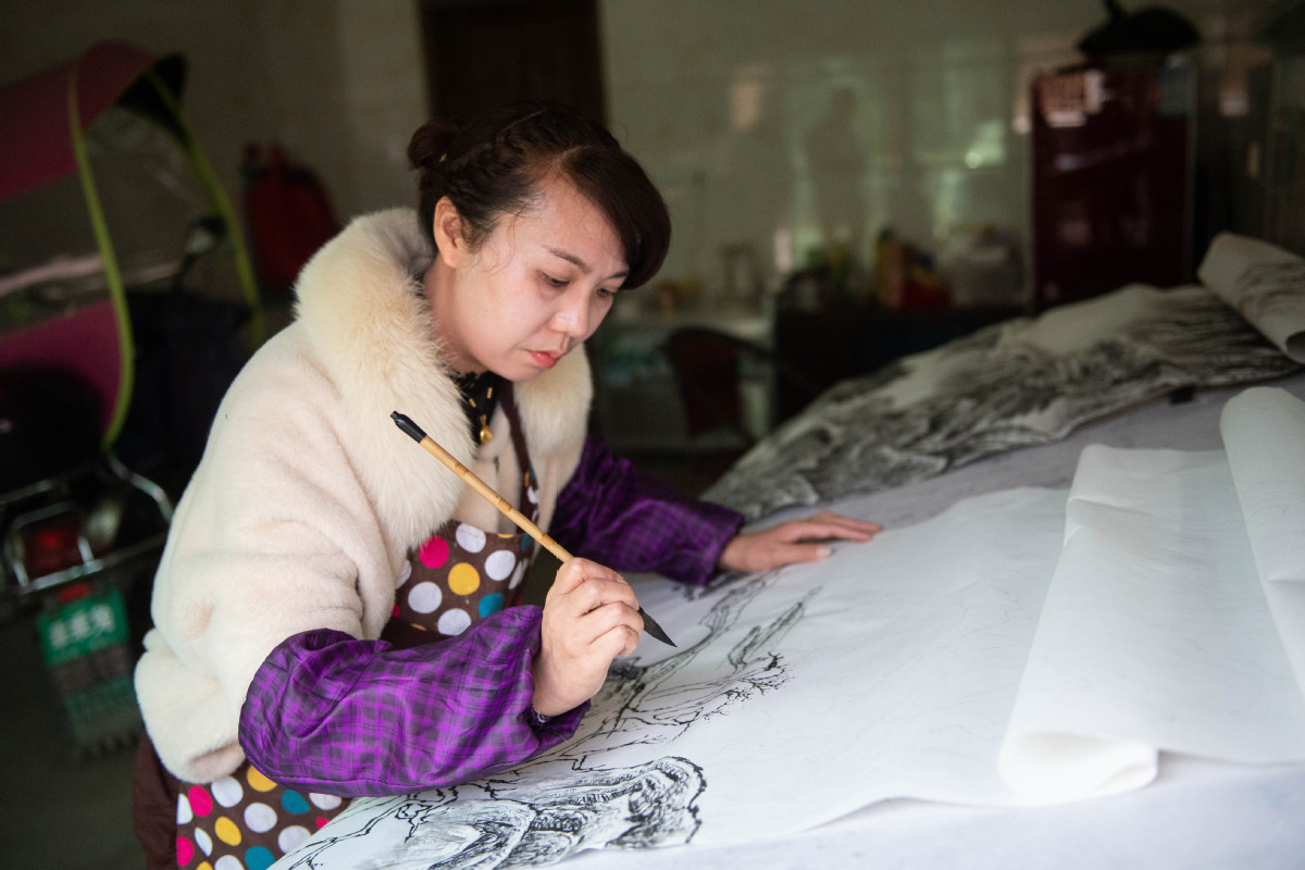 However, her life was turned around in 2016 when local authorities established several studios in Xiaohe to teach farmers how to earn a living from painting. Zhang was one of the first to pick up a paint brush.