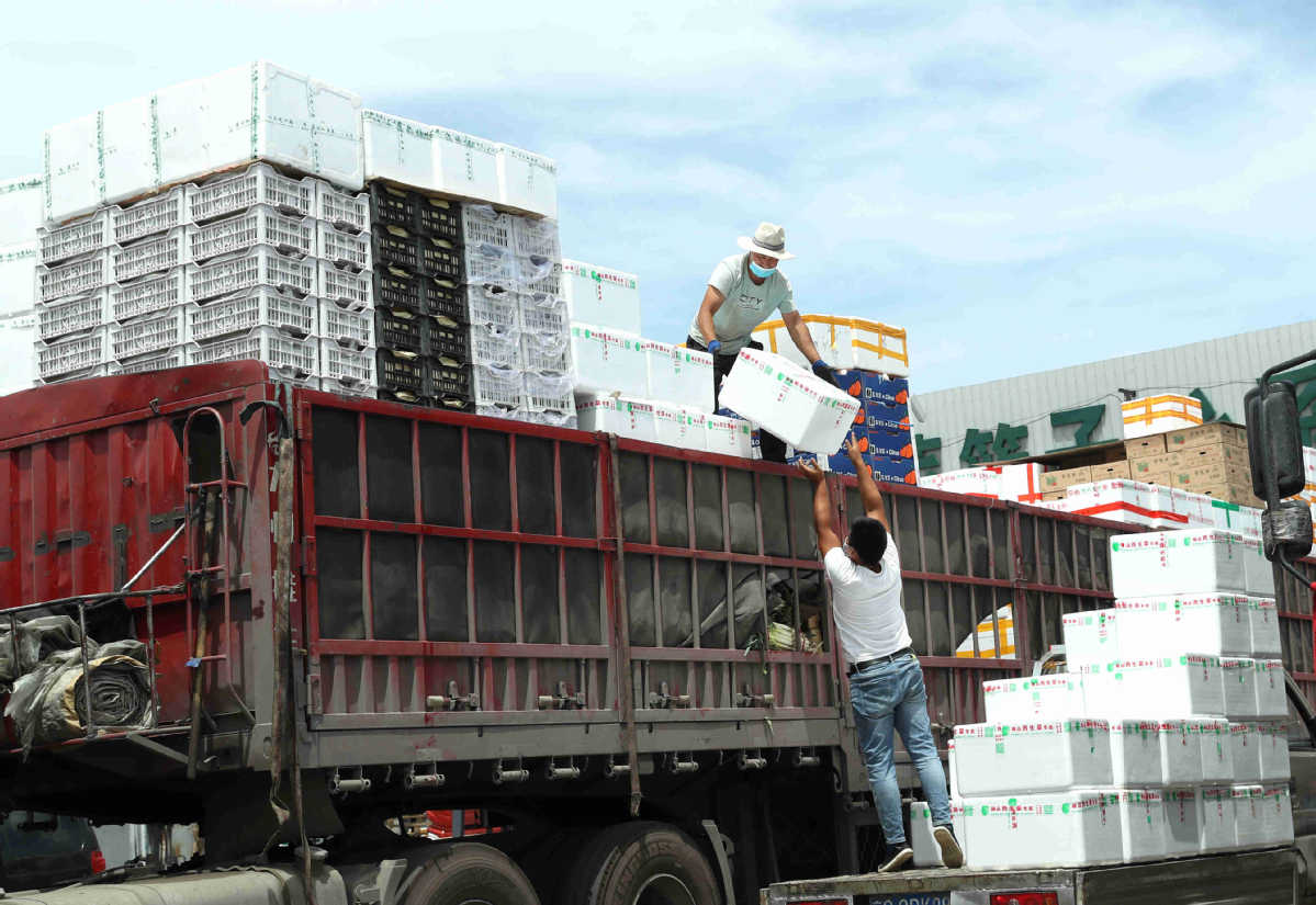 Vegetables are unloaded at a temporary trading area in Beijing on Monday. Zou Hong/China Daily