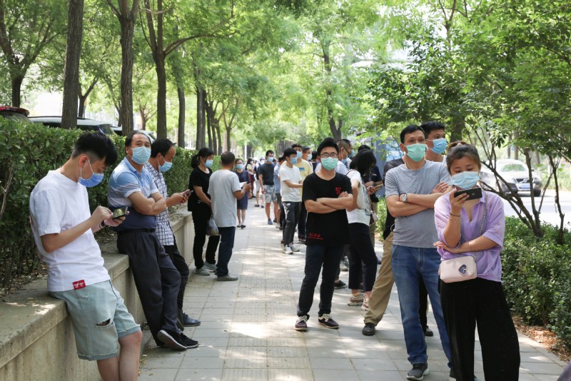 People queue to have a COVID-19 nucleic acid test in Changping district, Beijing, on June 18, 2020. [Photo by Wu Xiaohui/chinadaily.com.cn]