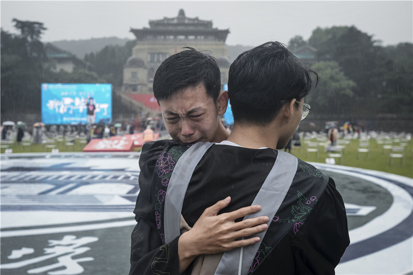 Wuhan University holds commencement ceremony in rain