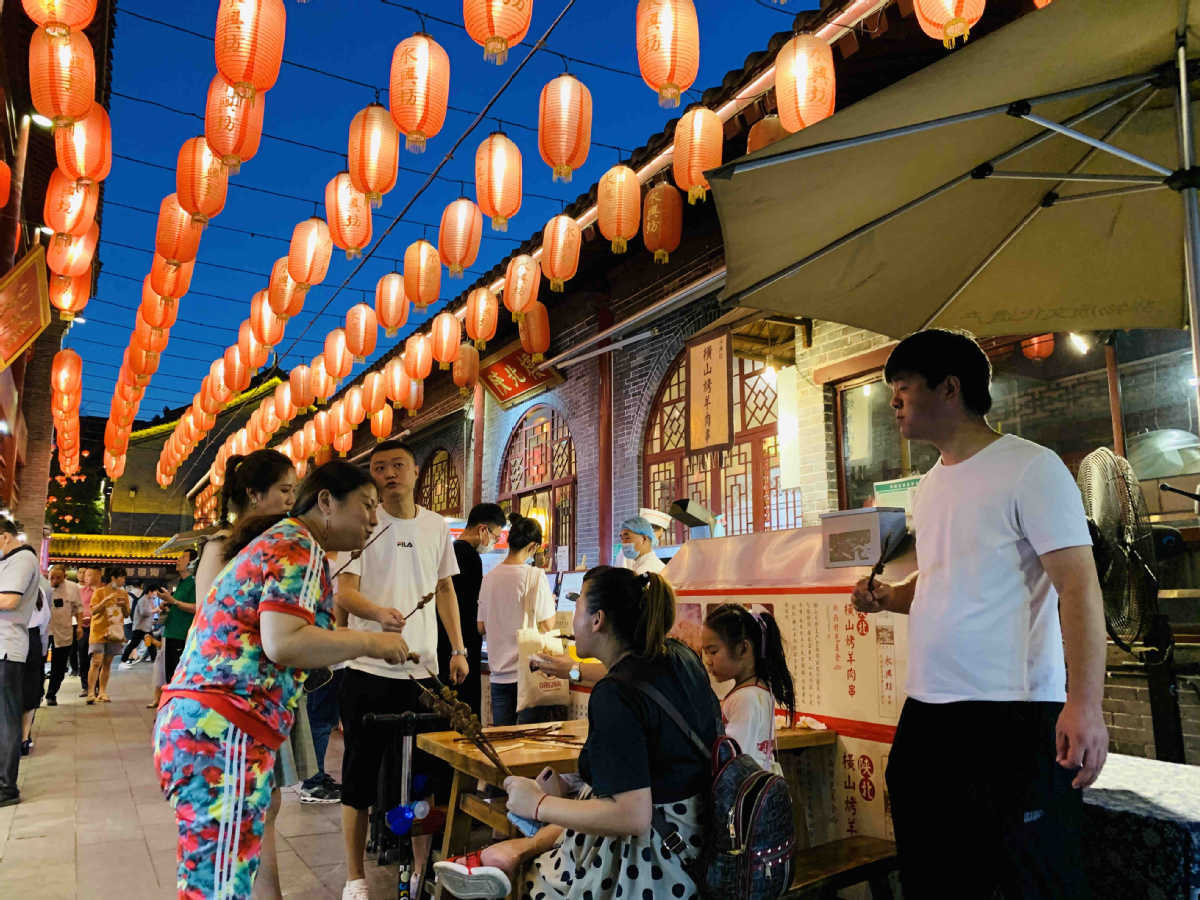 People eat and take part in events and activities at the night market in Xi'an, Shaanxi province. [Photo by Fu Guilin/for chinadaily.com.cn]