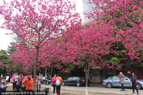 Tourists enjoy cherry blossoms at South China Agricultural University in Guangzhou, Guangdong province on Feb 11, 2019. [Photo/Sipa]